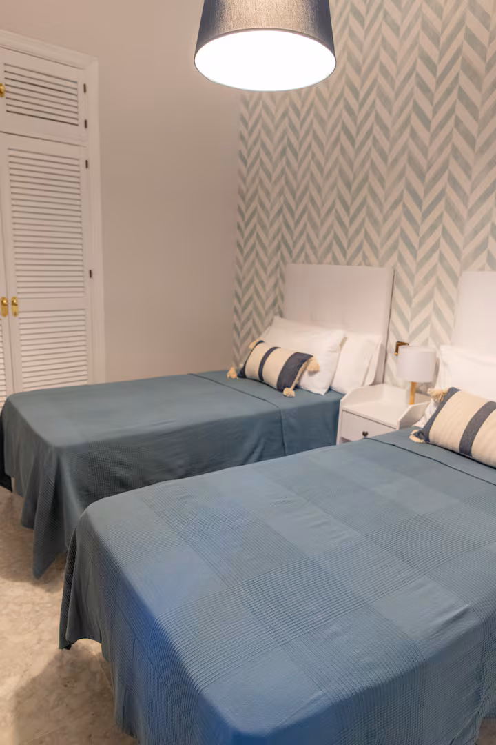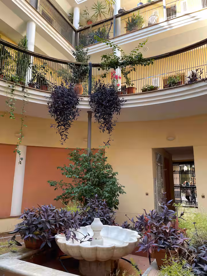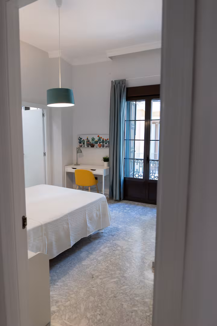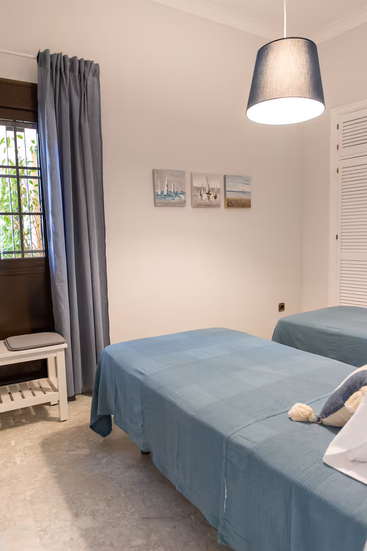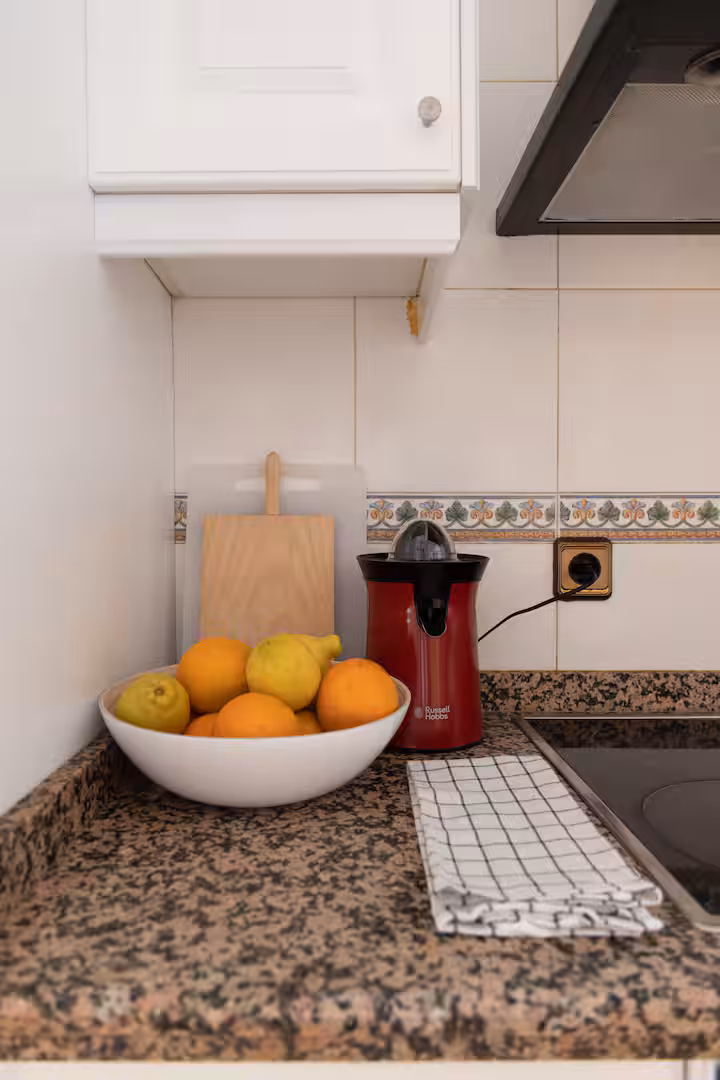 El apartamento cuenta con 2 dormitorios: el primero con cama de matrimonio, y el segundo de dos camas individuales de 90;Un amplio salón-comedor de estilo moderno con un precioso ventanal a una calle típica y tranquila del centro de la ciudad. Cuenta con un amplio sofá cama y una mesa comedor redonda para seis comensales.La cocina es funcional y totalmente equipada (exprimidor de naranjas para hacer zumo, lavavajillas, vitrocerámica, cafetera, tostadora, microondas, calentador de agua para infusiones, exprimidor para zumos), da al amplio y bonito patio interior del inmueble, lleno de plantas y flores.Dos cuartos de baño completos: el baño del dormitorio principal es de obra nueva y cuenta con un plato ducha, y el otro baño reformado recientemente, también completo, cuenta igualmente con un plato ducha nuevo.Además, todas las estancias cuentan con aire acondicionado/calefacción