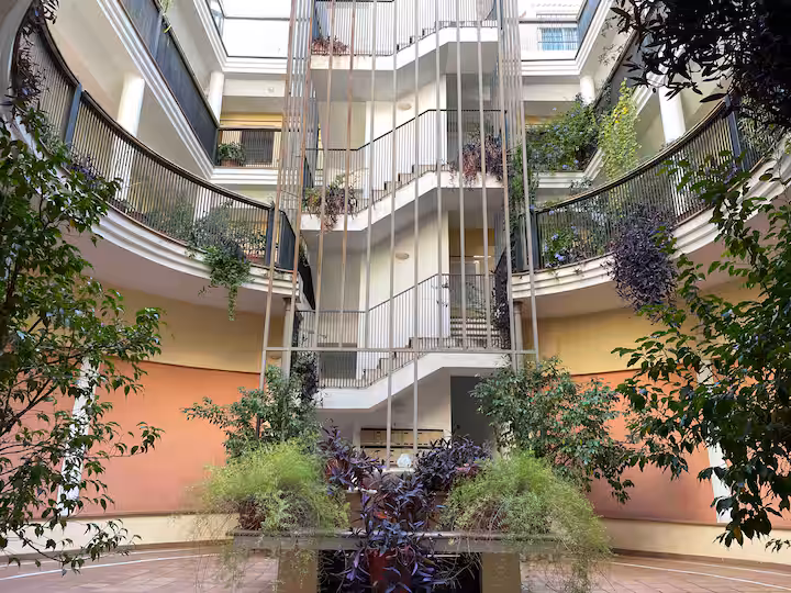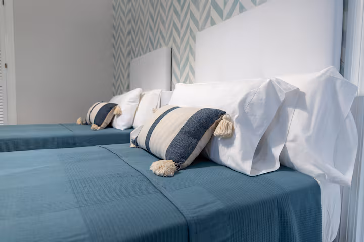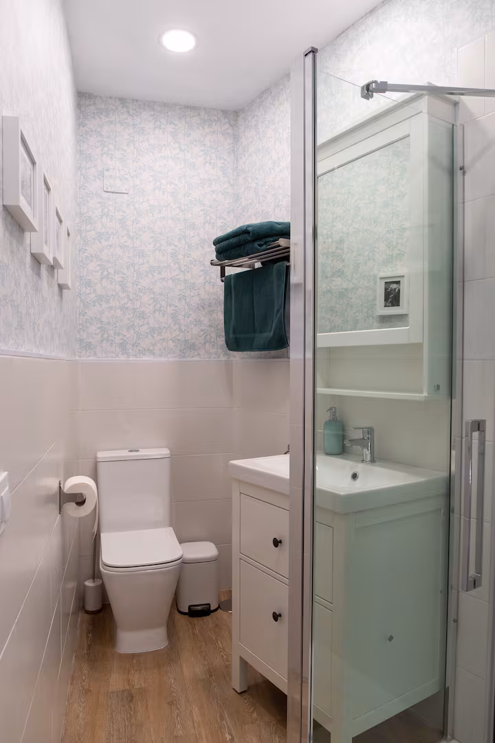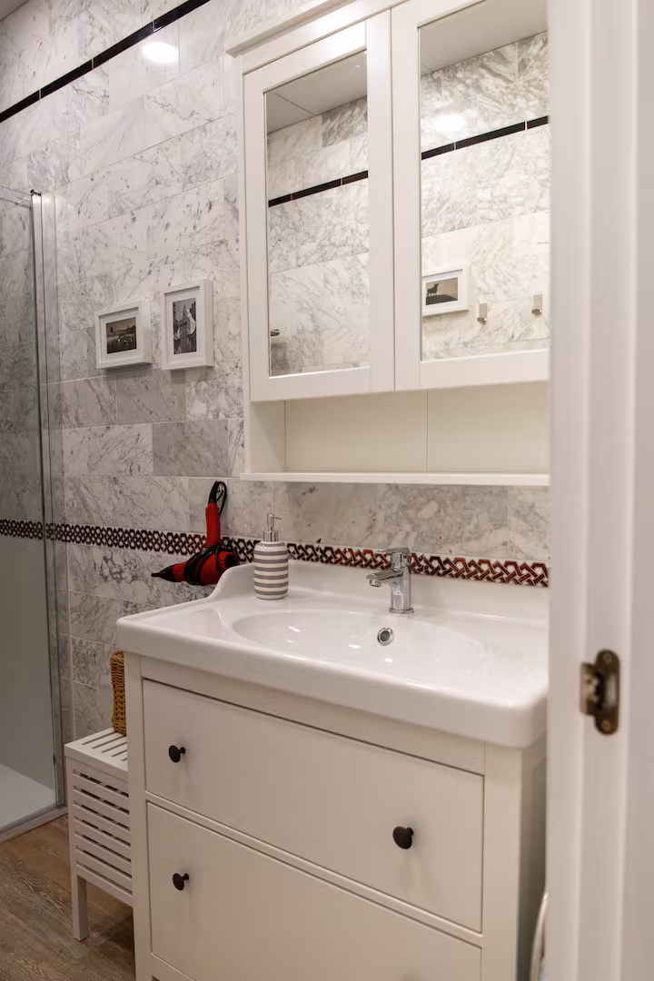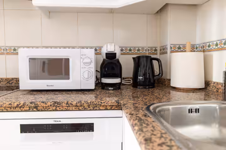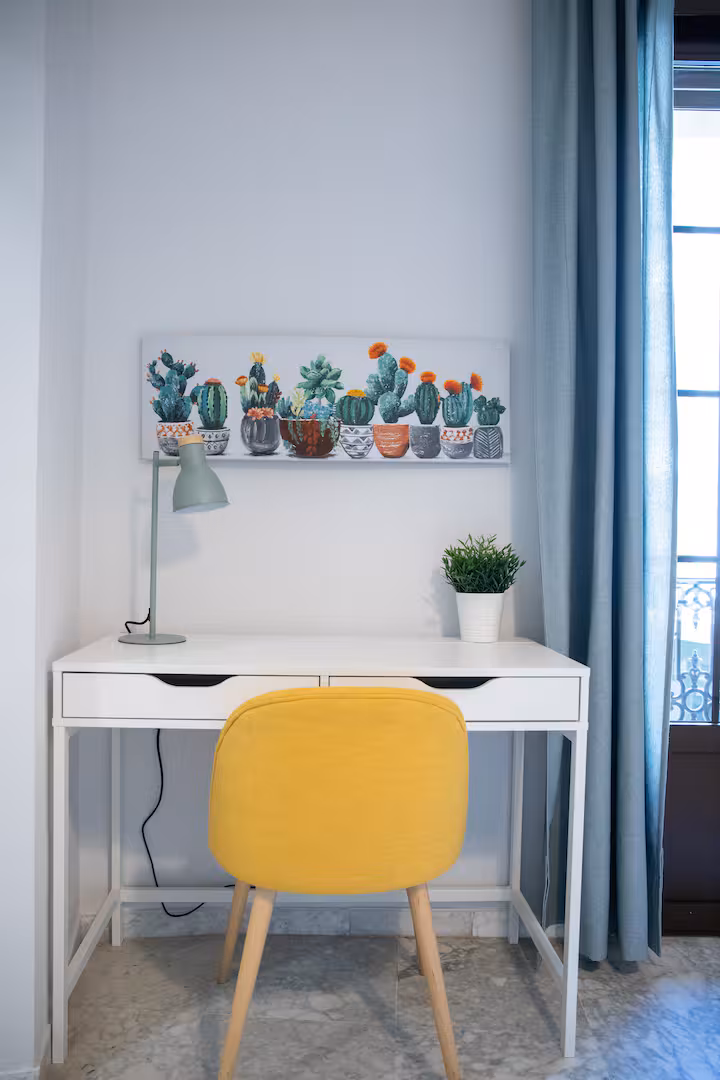 El apartamento cuenta con 2 dormitorios: el primero con cama de matrimonio, y el segundo de dos camas individuales de 90;Un amplio salón-comedor de estilo moderno con un precioso ventanal a una calle típica y tranquila del centro de la ciudad. Cuenta con un amplio sofá cama y una mesa comedor redonda para seis comensales.La cocina es funcional y totalmente equipada (exprimidor de naranjas para hacer zumo, lavavajillas, vitrocerámica, cafetera, tostadora, microondas, calentador de agua para infusiones, exprimidor para zumos), da al amplio y bonito patio interior del inmueble, lleno de plantas y flores.Dos cuartos de baño completos: el baño del dormitorio principal es de obra nueva y cuenta con un plato ducha, y el otro baño reformado recientemente, también completo, cuenta igualmente con un plato ducha nuevo.Además, todas las estancias cuentan con aire acondicionado/calefacción