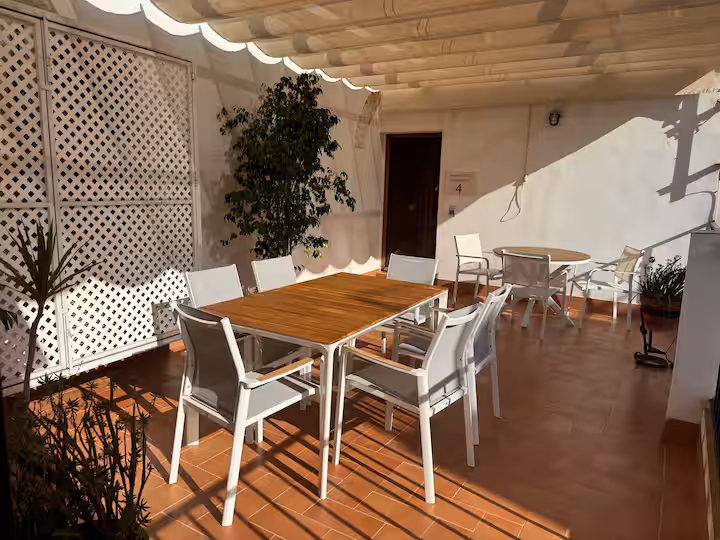 El apartamento dispone de una mesa de uso exclusivo en una terraza al aire libre